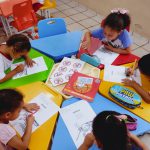 Inicialmente em roda, conversamos para abordar o tema. O que é dengue? O mosquito?
