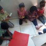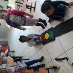 OBJETIVOS ALCANÇADOS: atividade em conjunto na elaboração dos carrinhos e faixa de pedestre identificando as formas geométricas e cores, as quais auxiliam nas atividades matemáticas.