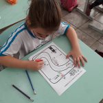 Os estudantes, realizaram a leitura da canção, identificaram rimas: “Motorista – Pista”, cantaram a música fazendo gestos e movimentos como um motorista. Relembraram a atividade prática que realizaram sendo motoristas.