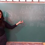 A galerinha toda participativa abordou o uso do celular durante ao atravessar as ruas ou ao dirigir. Ambas totalmente erradas porque causa falta de atenção!
