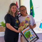 Em seguida foram feitos a entrega dos prêmios do concurso de desenho com o tema“ repense suas atitudes” do Projeto Viva o meio Ambiente e para entregar o premio a Monique p para o 3º lugar Carlos Eduardo Cardoso