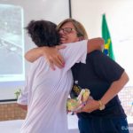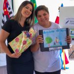 Chamamos a professora Marciele para entregar o premio a vencedora do 3º lugar Rosemara Aparecida Costa