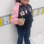 Os alunos plantaram grãos de feijão em um copo descartável e algodão e regaram todos os dias. Com isso, aprenderam o desenvolvimento do feijão e quais os itens necessários para viverem, como água e calor do sol.