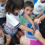 No dia 21/03 os alunos do Maternal II A, do C.M.E.I Profª Bernardete Maria Sedrez da Silva, dentro do tema Água, participaram de uma experiência sensorial com bolinhas de gel que absorvem a água. A professora utilizou a cor azul para representar o elemento. Foi uma brincadeira que envolveu e estimulou vários sentidos dos pequenos, principalmente o tato.