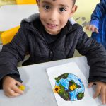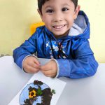 As crianças foram convidadas a realizar uma representação do planeta Terra utilizando materiais naturais coletados no ambiente escolar, como terra, folhas, flores e sementes. A atividade possibilitou a experimentação de diferentes texturas, cores e formas, promovendo o desenvolvimento da percepção sensorial, da coordenação motora fina e da linguagem artística.