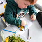 • “Traços, sons, cores e formas”: ao favorecer a expressão criativa por meio de diferentes linguagens, como desenho, colagem e composição com elementos da natureza.