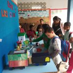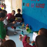 Aqui após trabalharmos alguns gêneros textuais como música, poema e jogral sobre o tema Meio Ambiente, fizemos a interpretação dos textos, produção textual e depois pedi para que os alunos em parceria com o seu responsável confeccionasse um brinquedo ou objeto a partir de material reciclável.