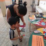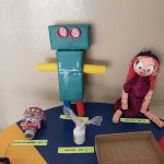Durante a exposição, as crianças apresentaram com orgulho suas criações, explicando como foram feitas e quais materiais utilizaram. Foi um momento de socialização e valorização do trabalho coletivo, no qual puderam compartilhar suas aprendizagens sobre a importância da reciclagem e do cuidado com o meio ambiente.