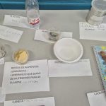 Cada estudante trouxe um item de uso cotidiano, como garrafas plásticas, latas, restos de alimentos, lápis, canetas, cadernos e até bitucas de cigarro, acompanhados de etiquetas que indicavam o tempo médio que cada resíduo leva para se decompor na natureza. A turma organizou os objetos sobre a mesa de forma clara e criativa, demonstrando o aprendizado de forma concreta.