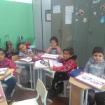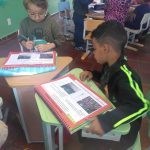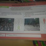 Com o auxílio do material apostilado, a professora da sala reuniu os alunos em grupos e com ajuda do texto explicou para os alunos a importância de respeitar e usar a faixa de pedestre, após o término da atividade as crianças levaram para a casa a apostila para participar toda família dos conhecimentos adquiridos.