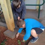 Utilizamos vários materiais ,dentre eles alguns retirados do meio ambiente como terra seca,pedrinhas,areia ,etc…