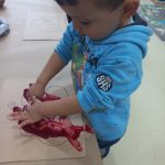 Observação: Usar de elementos naturais, de forma consciente para produzir as tintas traz para as crianças vivências de pintura infantil em harmonia com o meio natural, com a arte e com a cultura. A sustentabilidade é a principal vantagem que temos em trabalhar com esta proposta, assim evitamos as tintas convencionais e quem ganha com isso são as crianças e o meio ambiente. Participaram desta proposta 22 crianças. No NEI Rio das Ostras, em Balneário Camboriú.
