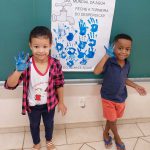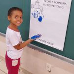 Durante a atividade, os alunos participaram da confecção de um cartaz coletivo com o tema “Feche a torneira do desperdício!”, no qual puderam expressar, por meio da arte, o seu envolvimento com a temática. Utilizando tinta azul, as crianças carimbaram as mãos no cartaz, simbolizando o compromisso com a economia da água e a preservação do meio ambiente.