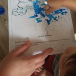 Estimular a Coordenação motora e identificar a cor azul, a textura da tinta e preservar o meio ambiente.