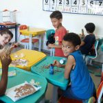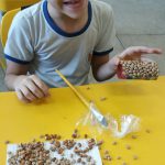 - Pintamos os rolinhos e depois colamos os feijões nos rolinhos, esperamos secar e pintamos de amarelo pra imitar um milho.