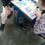 As crianças da minha sala do 5º ano E fizeram a leitura da nova revistinha de histórias em quadrinhos, compartilhada cada aluno leu um trecho da revista sobre foco na distração no trânsito, se preparando para fazer o desenho do Natal.