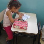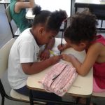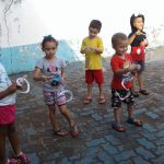 Abordamos temas ambientais e em seguida trabalhamos com materiais recicláveis na confecção de brinquedos folclóricos.