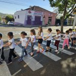 Para o aprendizado se tornar concreto, foi programado um passeio de ônibus escolar até a Biblioteca Municipal, percorrendo ruas para observação de placas de trânsito, semáforo, faixa de segurança e pedestres. Depois experimentar a sensação de atravessar a rua na faixa de segurança observando os dois lados antes de atravessar.
