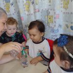 O CMEI Professora Bernardete Maria Sedrez da Silva localizado na cidade de Navegantes atende crianças de 3 meses a 1 ano de idade (bebês) das turmas de Berçário I A e B. Estudar sobre a água é sempre muito divertido. Estamos sempre realizando experiências e aprendendo. Sendo assim, realizamos uma atividade em que os bebês podem observar a ação da água sobre os objetos. Foi necessário garrafa pet, água e pequenos objetos coloridos. Os bebês participaram de todos os processos na construção da garrafa mágica. Depois de pronto, puderam explorar a mesma e sua ação sobre ela.
