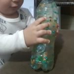 Com o intuito de incentivar a reciclagem, na atividade foi utilizado garrafas pets, Estimulando a curiosidade e observação dos bebês , explorando coordenação motora,concentração e percepção visual.