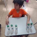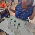 Alunos autistas grave da APAE de Taquarituba SP, realizaram como parte das atividades do dia da água, atividade da plataforma da ARTERIS adaptada ao nível deles onde usei as garrafinhas para trabalhar cheio/vazio, leve/pesado separando de um lado as cheias/ pesada e de outro as leve/vazias.