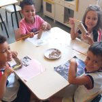 A professora Taiane juntamente com seus alunos, confeccionaram lindos gatinhos usando rolinhos de papel higiênico, os alunos participaram em cada etapa dessa atividade, além do aprendizado sobre o animal, os alunos aprenderam o respeito que tem que ter com os animais além da reutilização de materiais, tudo pode virar um brinquedo, basta usar a imaginação.