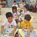 Os alunos folharam gibis e revistas na sala de aula, logo após ouviram a história dos personagens da ARTERIS, conversamos sobre suas características, sobre respeito às diferenças, visto que uma personagem é cadeirante, as crianças manipularam os gibis e revistas e gostaram da nova atividade.
