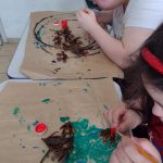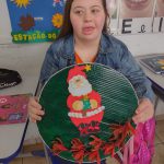 Os símbolos do Natal representam o cenário da comemoração dessa grande festa. Cada um dos símbolos surge não só porque são bonitos e trazem mais beleza e alegria à festa, mas porque todos eles têm uma curiosa história para contar e, desta forma, transmite uma mensagem. As guirlandas são sinal de boas-vindas para quem nos visita nessa época festiva. É por isso que é tradição pendurá-las na porta principal das casas. Usando materiais recicláveis como: papelão, flores secas, retalhos de tecidos, barbantes, tinta guache, pincel, verniz, gliter, fita adesiva e papai Noel de EVA foi possível criar uma guirlanda de natal onde cada aluno confeccionou o seu com a intermediação da professora.