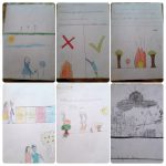 Desenhos dos alunos mostrando problemas ambientais e suas possíveis soluções.