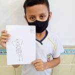 Após uma roda de conversa produziram super-heróis com poderes de proteção ao meio ambiente.