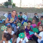 As professoras levaram os alunos na área externa da Unidade Escolar para apresentar a nova revista da história em quadrinhos do Zé Quest 2019, foi entregue uma revista para cada aluno para acompanhar a história junto com o professores e também os fantoches da turminha Zé Quest da escola .