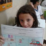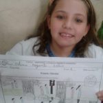 Depois de ler os gibis da Arteris e fazermos uma roda de conversa sobre o tema, na qual cada criança teve a oportunidade de expor suas ideias e opiniões sobre o assunto, os alunos produziram individualmente sua própria história em quadrinhos com uma situação no trânsito.