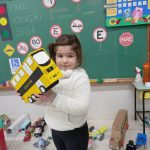 Dramatizar uma rua com trânsito de carros, pedestres observando as placas e sinais utilizando os meios de transportes confeccionados pelas famílias e com os aventais confeccionados pela professora.