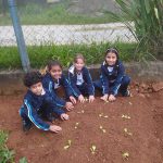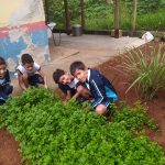 Horta na escola, momento em que as crianças mexem na terra, aprendem a cultivar verduras, reconhecendo a importância da natureza e de onde vem o alimentos das nossas mesas.