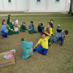 No dia de hoje, a professora Erika trabalhou com seus alunos do Pré II a construção de uma horta no litro descartável… Aproveitou para trabalhar também o tema reciclagem…. O mesmo litro usado para a confecção do bilboquê foi usado para a construção individual de cada horta….