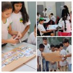 Após pesquisas, leitura e debates, a turma foi dividida em três grupos. Em seguida, entreguei a cada aluno HQ RODA, RODA, RODA RODOVIA recortada em partes de acordo com a história, papel pardo. Pedi para que lessem os quadrinhos e colassem como achariam correto. Em seguida, leram suas partes.