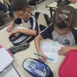 Os alunos analisaram imagens de desenhos para colorir com a fauna e a flora de cada região, juntos identificaram as características e pintaram.