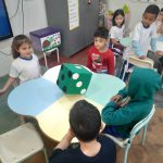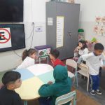 A atividade tem como objetivo que os alunos saibam identificar algumas placas de trânsito presentes no seu cotidiano e desenvolvam competitividade e trabalho em equipe. Para realizar a atividade, a professora utilizou a lousa digital e jogos on-line. Os alunos foram divididos em grupos e jogavam um dado, a equipe que tirava o número maior no dado tinha o direito de identificar a placa apresentada, dando a resposta certa marcavam um ponto. Ao final da atividade a equipe que acertou o maior número de placas vencia a competição.