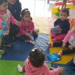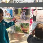 Iniciamos com uma contação de história ” A Patinha”. Depois figuras de animais foram expostas na sala. Falamos o nome de cada animal e reproduzimos o som deles, incentivando as crianças a repetirem. Eles amaram!