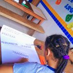 Desenvolvimento: Para iniciar a ação a facilitadora permitiu que os alunos vivenciassem algumas sensações trazidas pelas Queimadas, como pedir que fechassem os olhos e sentissem o cheiro, neste dia, houve grande fumaça em torno da região devido à queimada na entrada da cidade de Quissamã . A seguir a facilitadora colocou um barulho (vídeo com barulho de fogo crepitando). Ao terminar o tempo de sensibilização que foi rápido, perguntou aos alunos de que se tratava, sobre o qual o tema iriam discutir e como sentiram no momento dessa sensibilização. Após esse debate, deu continuidade à ação conceituando o termo Queimadas no mapa mental, contextualizando a partir da relação com a agricultura e pecuária, abordando as possíveis consequências trazidas pelas Queimadas. Esse momento foi realizado de forma expositiva fazendo uso de recursos como imagens. Em seguida, pediu aos alunos que respondessem a pergunta: quais as principais consequências das Queimadas para as pessoas e para o ambiente, sistematizando com cartaz informativo, pedindo que fizessem um paralelo com as respostas anteriores, realizando pesquisas online. Encerrou distribuindo panfleto para alunos levarem para casa.