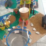 Foi utilizado materiais recicláveis como caixas, copos, canudos, tintas para a confecção de maquetes. A participação ativa das crianças na construção do material, tornou-se fácil acesso a fixação do conteúdo, tendo a relação da água com a sobrevivência dos seres vivos, pessoas, animais, plantas, etc.