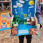 Para finalizar os alunos confeccionaram maquetes sobre o ciclo da água reutilizando materiais que tem em casa.