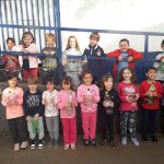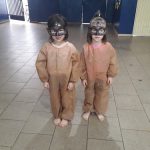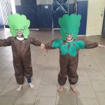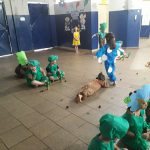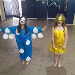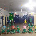 - Os alunos pintaram garrafa pet para confecção de um mobile de passarinho e borboleta para enfeitar o cenário do teatro.