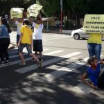 Os alunos dos oitavos anos E, F e G da nossa escola, coordenados pelas professoras Camila, Luma e Silvana,e com apoio da professora Marilda, realizaram no cruzamento das ruas Tenente Navarro e General Isidoro, intervenção na rua com o propósito de conscientizar os motoristas sobre direção responsável. A ação incluiu parada em semáforo, onde alguns alunos exibiram cartazes com perguntas como “Você está usando cinto de segurança?” e distribuíram panfletos confeccionados na escola. Outros estudantes fizeram performances encenando pessoas gravemente feridas em acidentes.