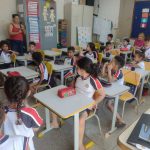 Dirigiram-se, então, à sala da turma do Jardim II AI, a qual, conforme descobriram, foi responsável pela confecção e instalação dos comedouros e bebedouros. Nesse momento, foi realizada uma entrevista entre as turmas, na qual os alunos do Jardim I AI questionaram os colegas sobre os cuidados necessários para evitar a criação do mosquito da dengue.