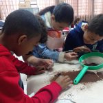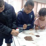 A atividade consistiu na coleta e investigação de amostras de solo de diferentes locais, observando aspectos como cor, textura, umidade e presença de matéria orgânica. Após o registro das observações, os alunos participaram de uma roda de conversa para discutir as diferenças entre os solos, suas possíveis causas e como as ações humanas podem influenciar diretamente na qualidade do solo.