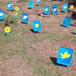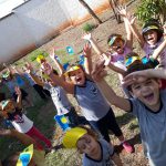 As crianças com a ajudada professora criaram vários personagens em bandejinhas de isopor que iriam para o lixo desenharam pintaram e coloriram nessa forma usaram a sustentabilidade e a reciclagem para deixar a aula mais divertida e a escola ganhou um colorido especial todos que ali passavam podiam ver e se encantar com a beleza de nosso jardim.