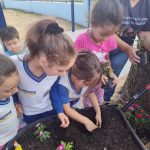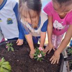 • Cada criança planta, em pequenos grupos, uma muda na carriola.