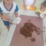 Montamos o “canteirinho” com cada um plantando o seu feijão.