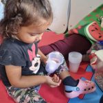 5ª AULA: PLANTANDO OS FEIJÕES – Concretizando o aprendizado da semana iremos plantar s feijões e acompanhar seu crescimento, observar os cuidados, e comemorar seu crescimento. Trabalhamos aqui também o movimento de pinça ao pegar o feijão e colocar no copo. Os copinhos vamos juntando durante a semana para reutilizar os que foram usados para beber água, ensinando também as crianças a conscientização sobre reaproveitamento e benefícios a natureza, mesmo que nessa idade.